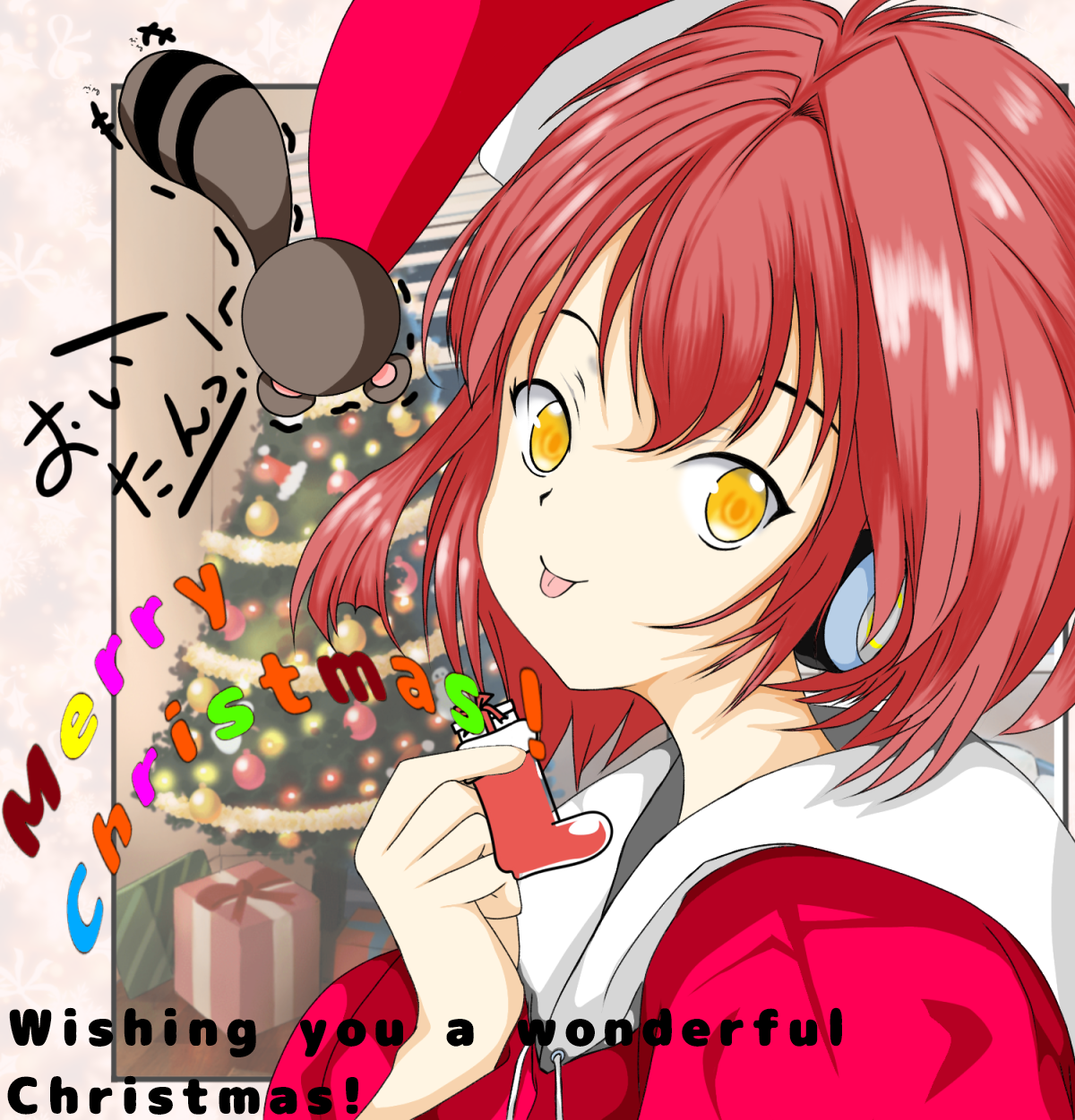 サンタの帽子の先のたぬきの尻尾のぷるぷる、可愛い💕