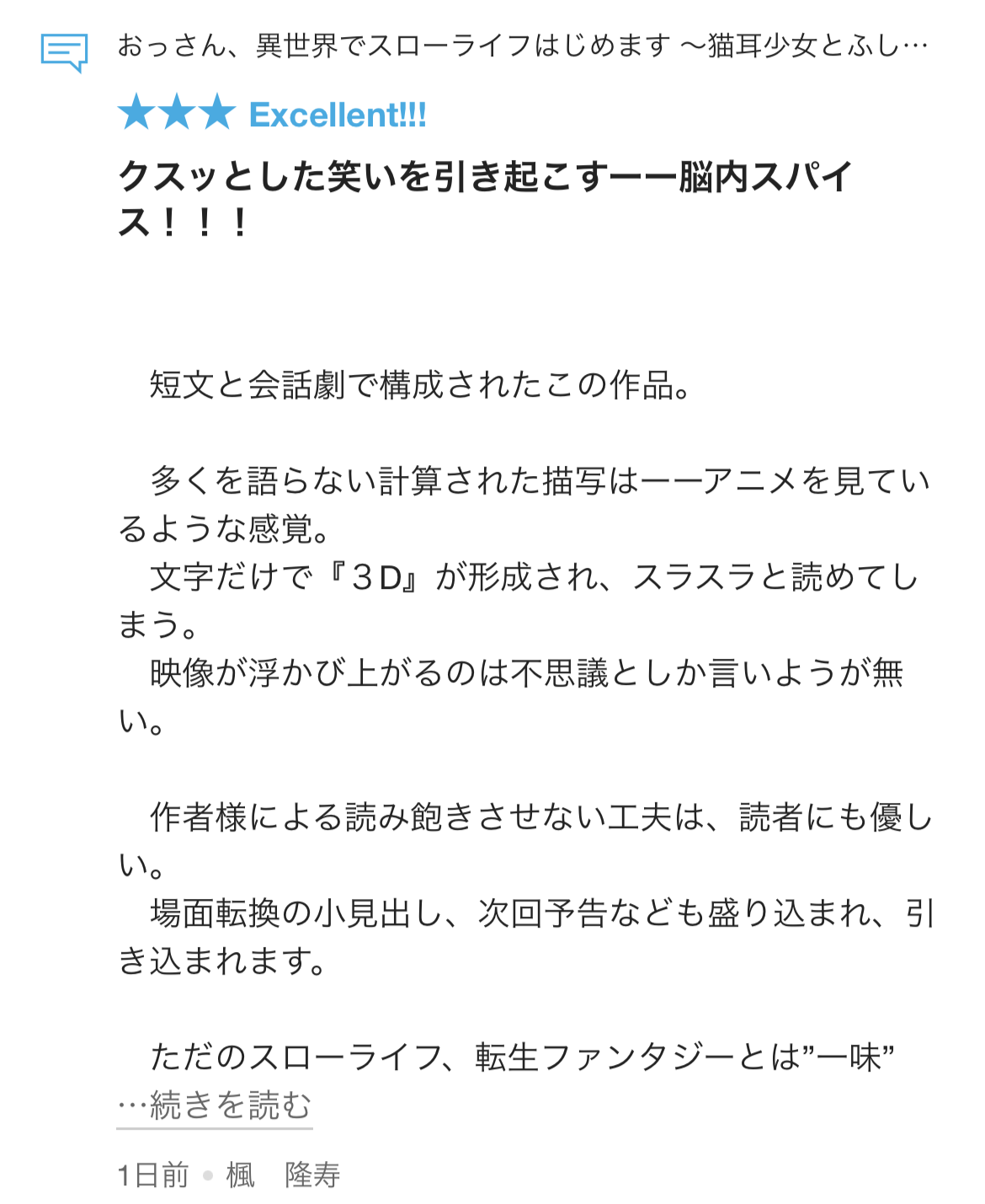 レビューコメントのお礼<(_ _)> 楓隆寿(カエデ・ルージュ)様