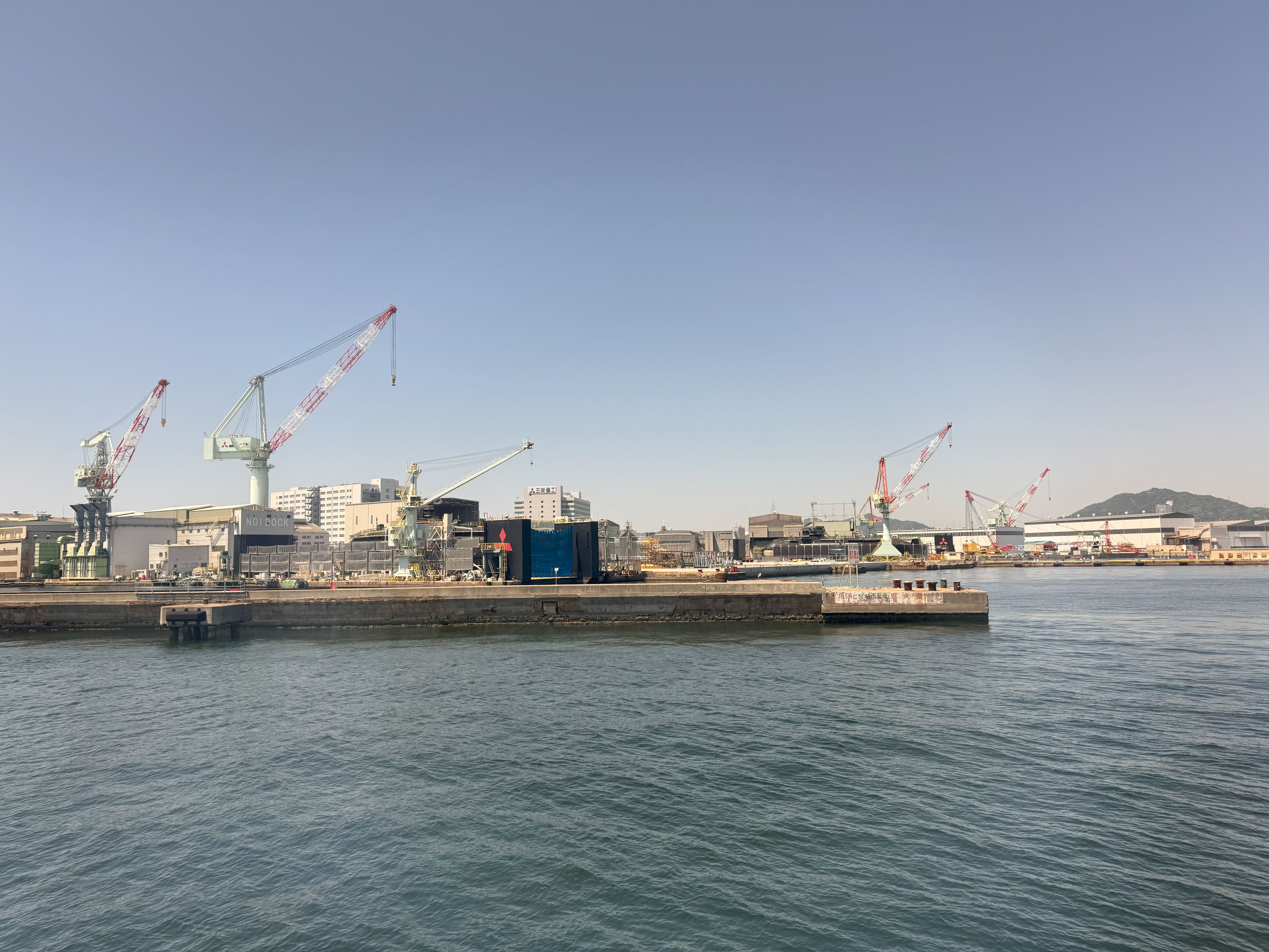 さて、この作品。冬寂が旦那の帰省に合わせて今年のGWに神戸へ遊びに行ったところから始まっています。最近船好きで、メリケンパークのところで神戸港を巡る遊覧船に乗りまして、そちらで神戸造船所のほうを海から見てまいりました。三菱と川崎重工で日本の潜水艦を一手に作ってます、というアナウンスが流されている最中、和田岬の小さな灯台の横に防波堤に囲まれた小さな浜辺を見つけました。ほんとにちっちゃいんです。