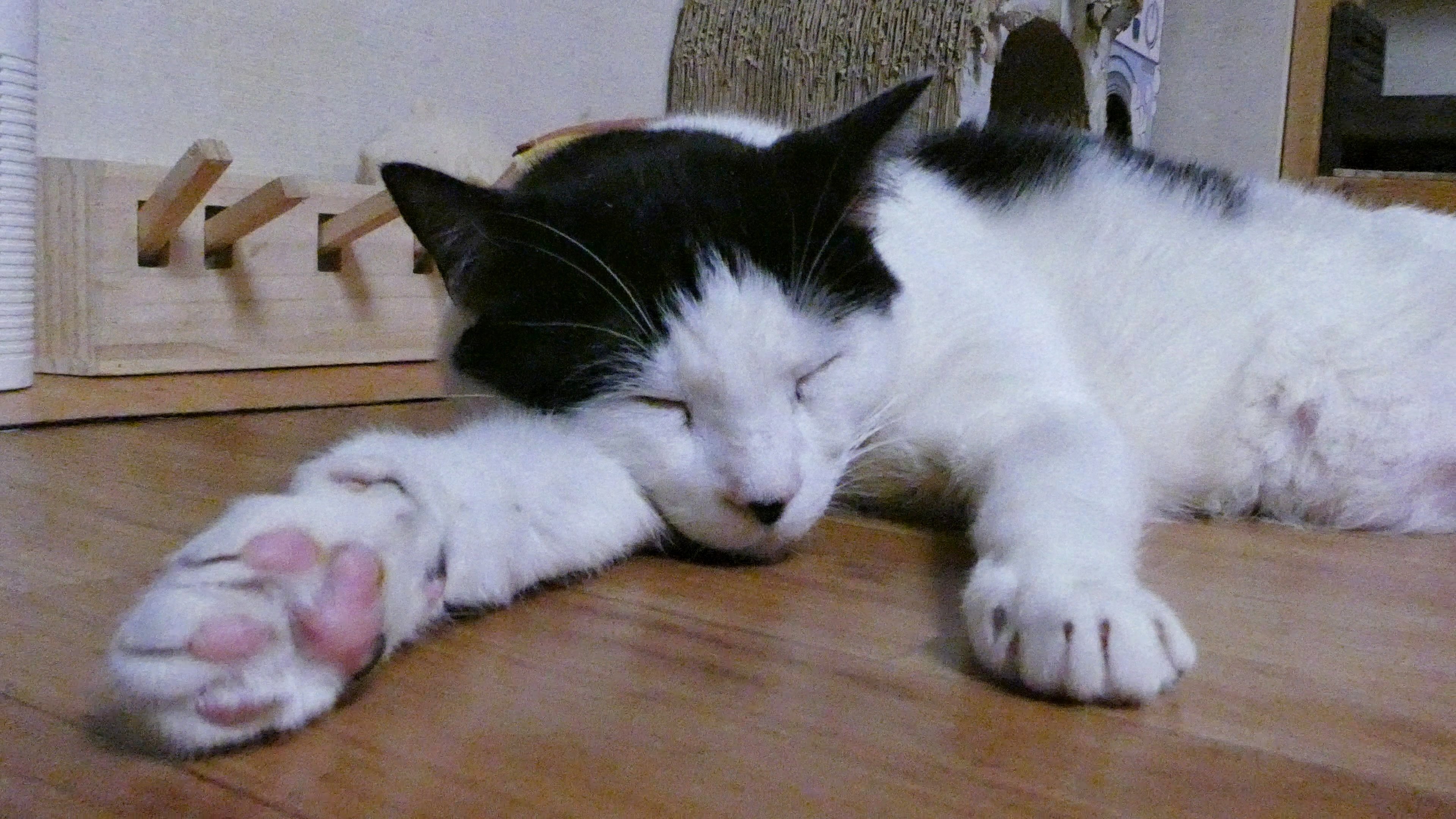 写真は保護猫カフェの猫さん(肉球見せ)です。