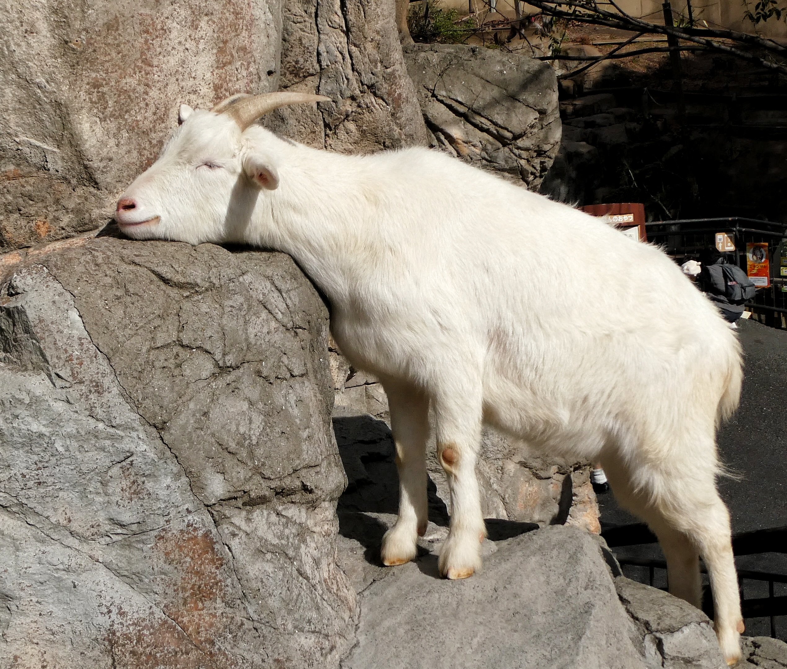 ちなみに写真は、岩にアゴを乗せて寝るヤギです。