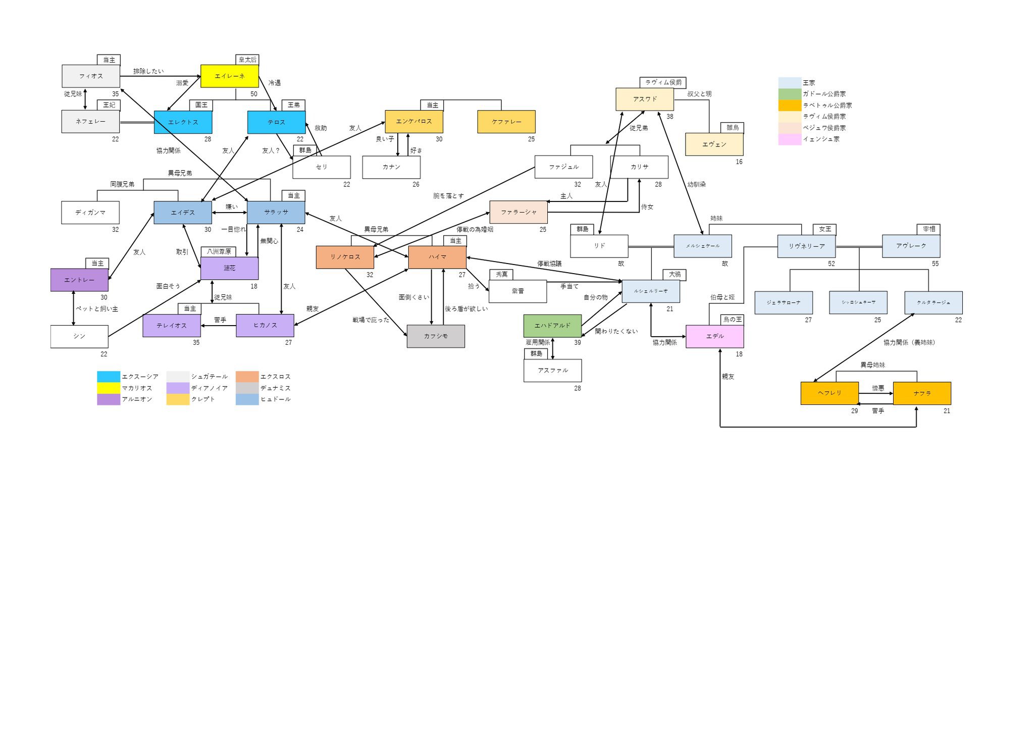こちらにもTwitterに上げている相関図(初期)を掲載してみます。年齢とか出身地とか色々と。その辺りが載っていない人物についてはまたいずれ。