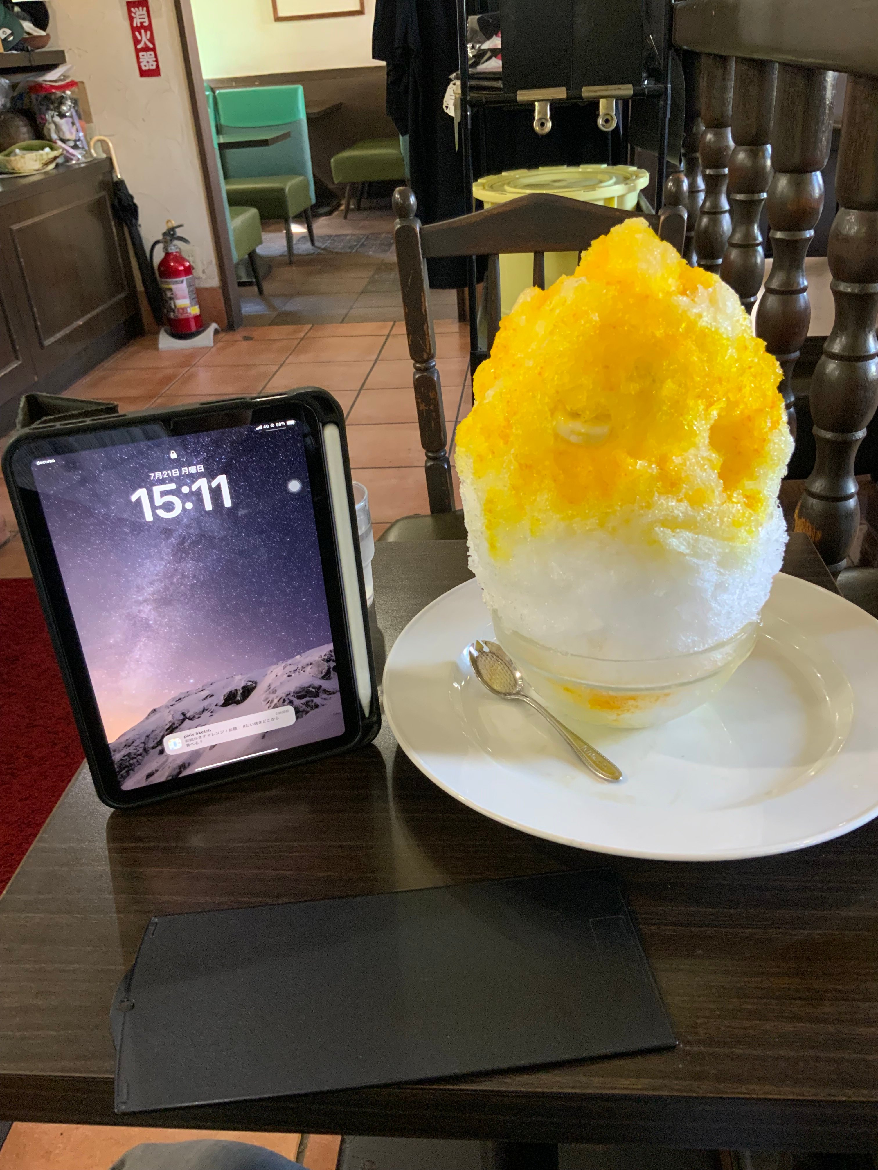 iPad miniが小さく見えるかき氷です。