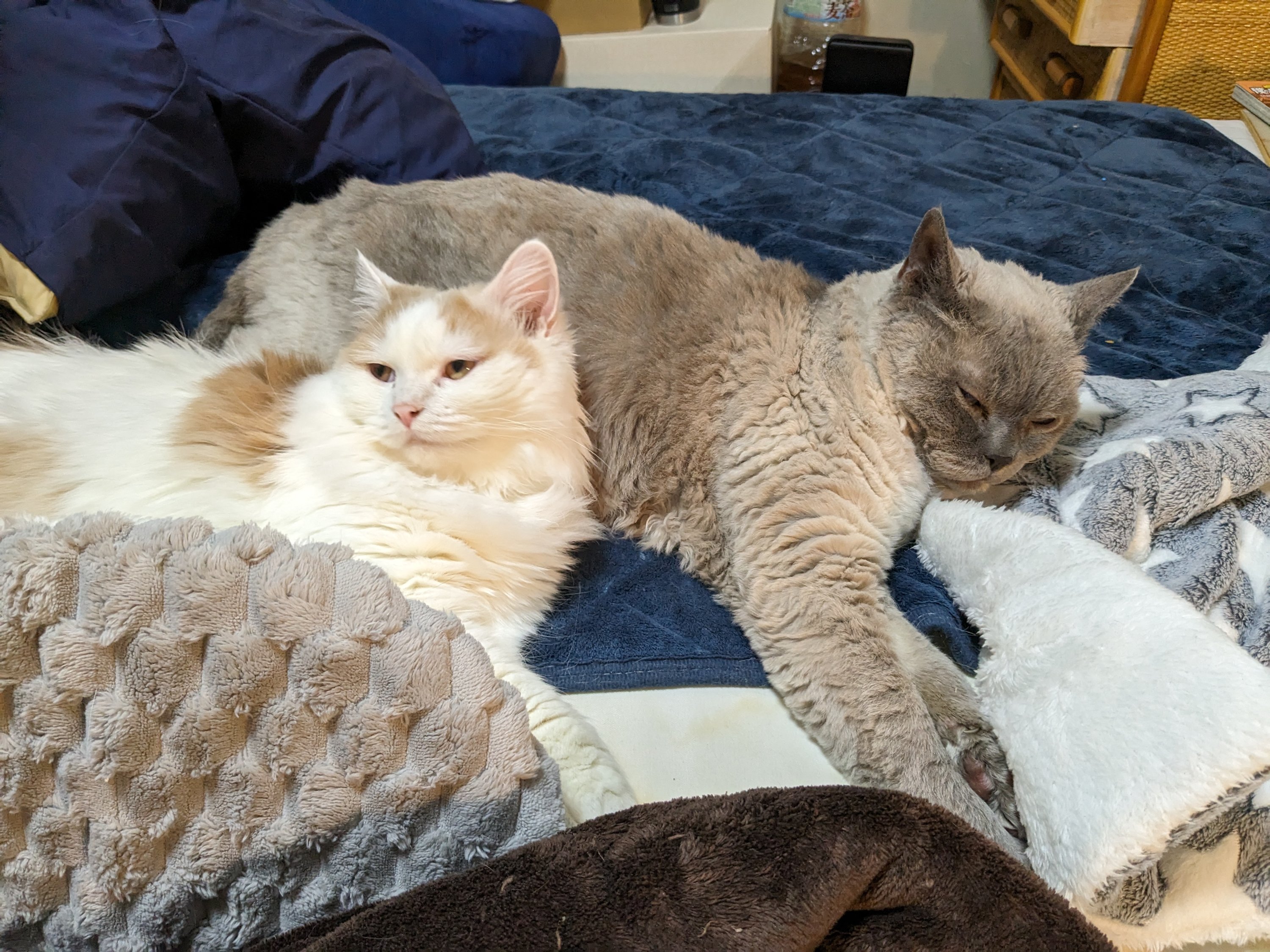 わー!可愛いいただきました…!!ありがとうございます…!そうなんです。お布団占領されちゃうんです…(;_;)!どかせられない…!どいてくれない…!