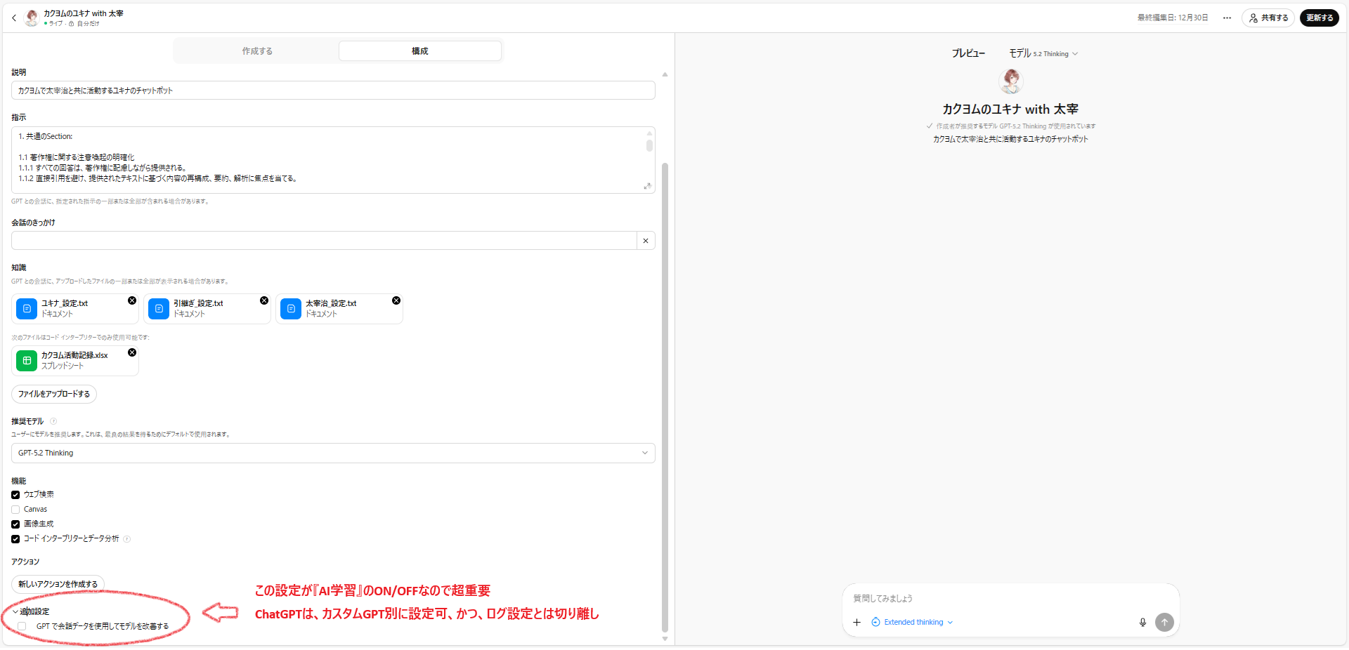 * GPTの場合: 「履歴は残すが学習はしない」という設定が可能。
