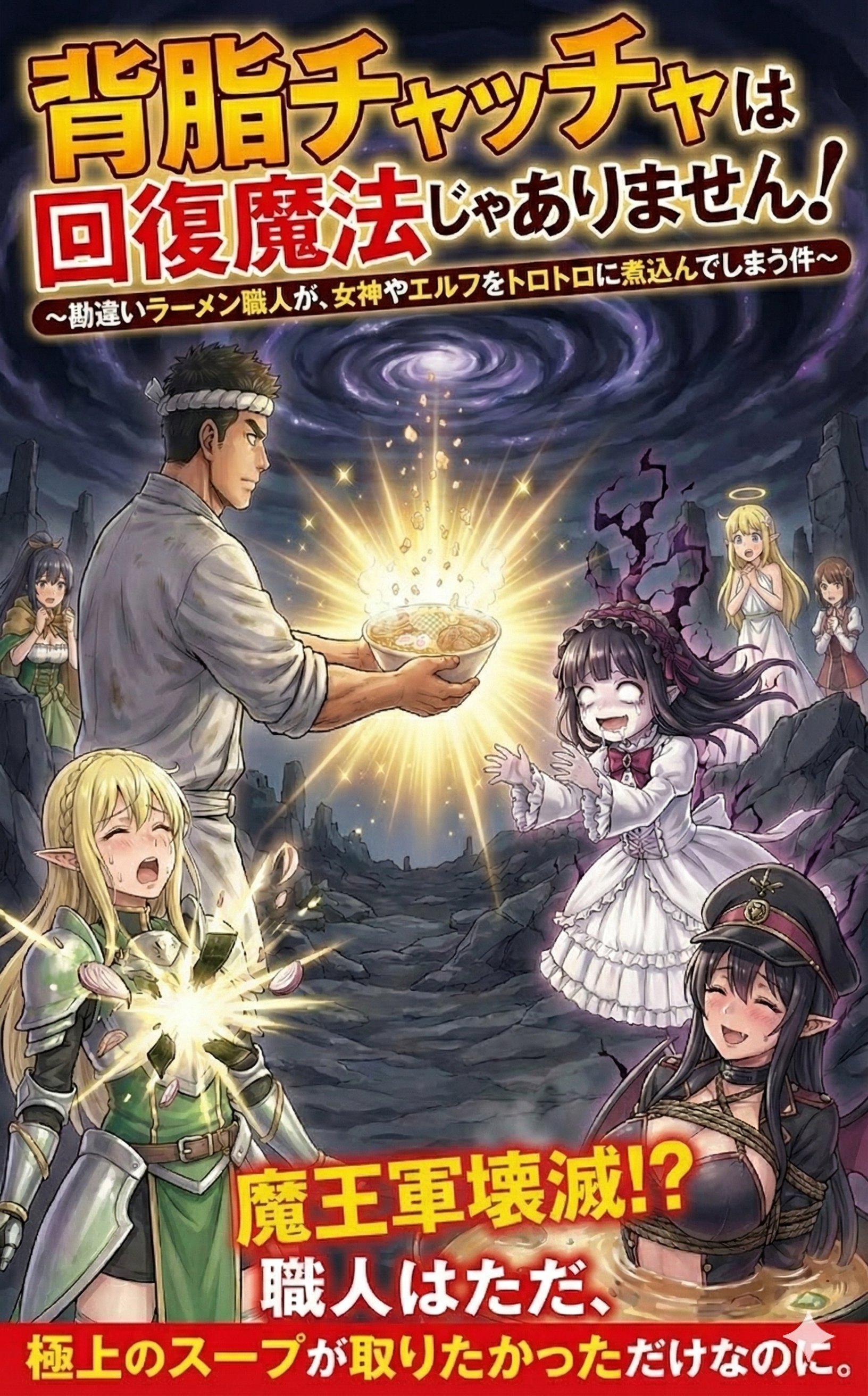 先ほど、新作『背脂チャッチャは回復魔法じゃありません! 〜勘違いラーメン職人が、女神やエルフをトロトロに煮込んでしまう件〜』の最新話を更新しました。