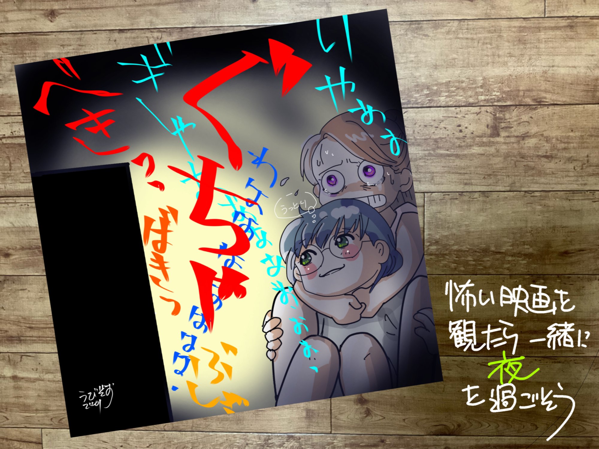 今回の絵は、「怖い映画…」のイメージ。うびぞおの頭の中では、こんな感じです。