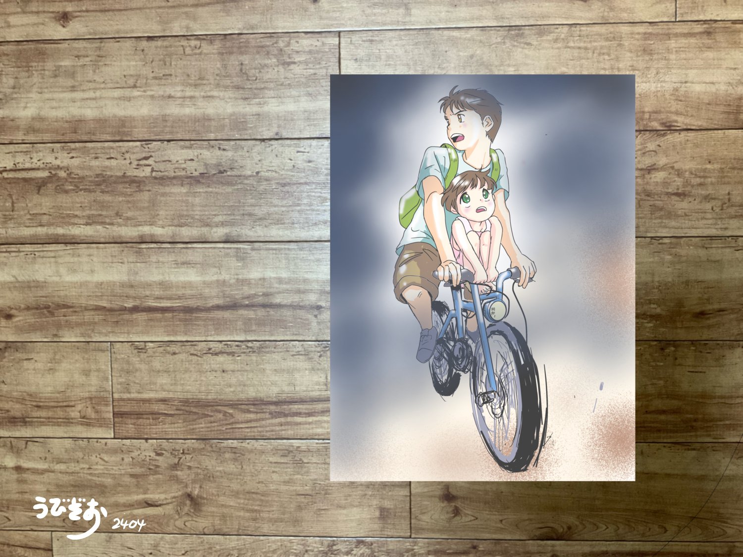 せっかくだから絵にしてみようとしたら、自転車に乗ってる人を描くような画力がないという厳しい現実がそこにありました……。とほほ。いつものことですが、ご笑覧ください。