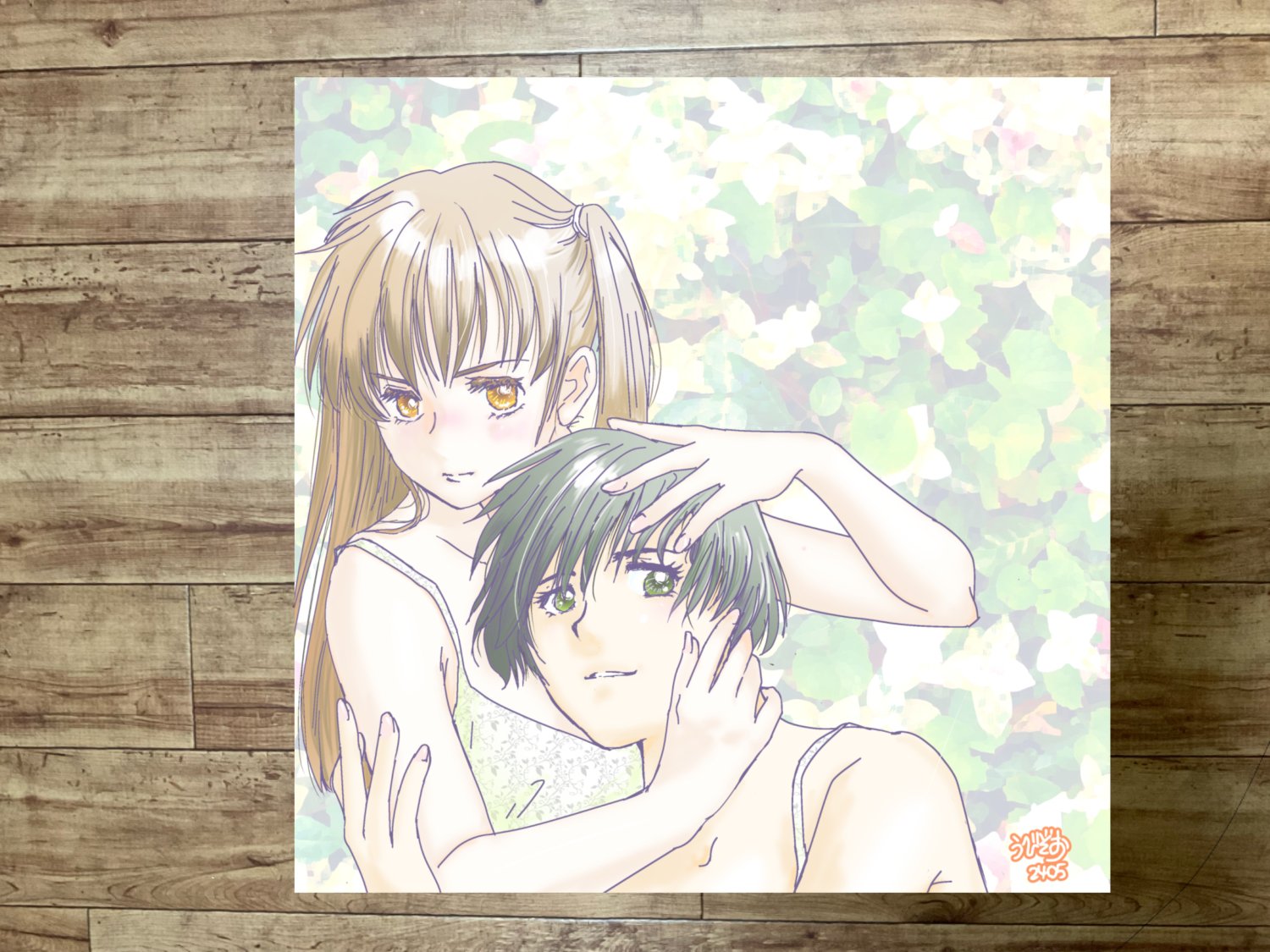 金星タヌキ様の「紺野さんとあきちゃん」のイメージ。少しだけ複雑だけど愛情深い二人の物語で、うびぞおはほぼ一気読みしてしまいました。読んでる途中から二人を絵にしたいと思っていましたが、ようやくGWに時間ができたので描かせていただきました。描いてて楽しかったです。