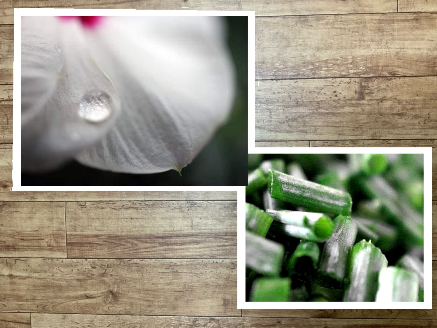 で、今回は絵じゃなくて写真です。『あがれッ』最新話「ルヲ(5)」で出てくる写真、ルヲが撮った「水滴」と「わけぎ」です。もちろん、うびぞお撮影ですが、なぜ、わけぎなんか撮ったのか自分でも分かりません。そこにあったから、っていうのと、接写レンズを買ったばかりではしゃいでたんだと思います。花は日々草だったかな?