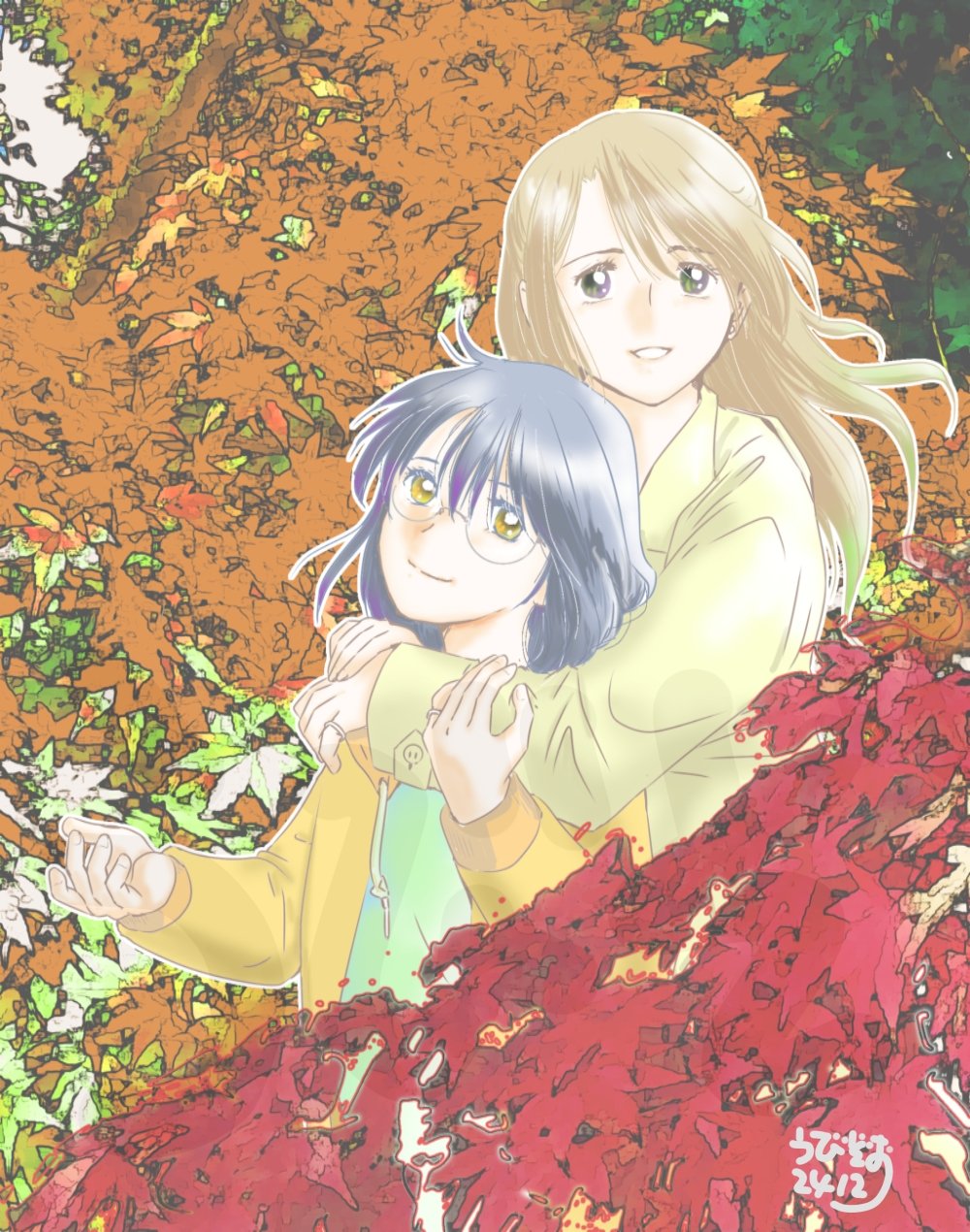 今回の絵は、映画の二人です。昔描いた紅葉の絵の描き直し(そんなんばっかやな)。12月なのにねー。次は、ナツユカ描けたらいいな。