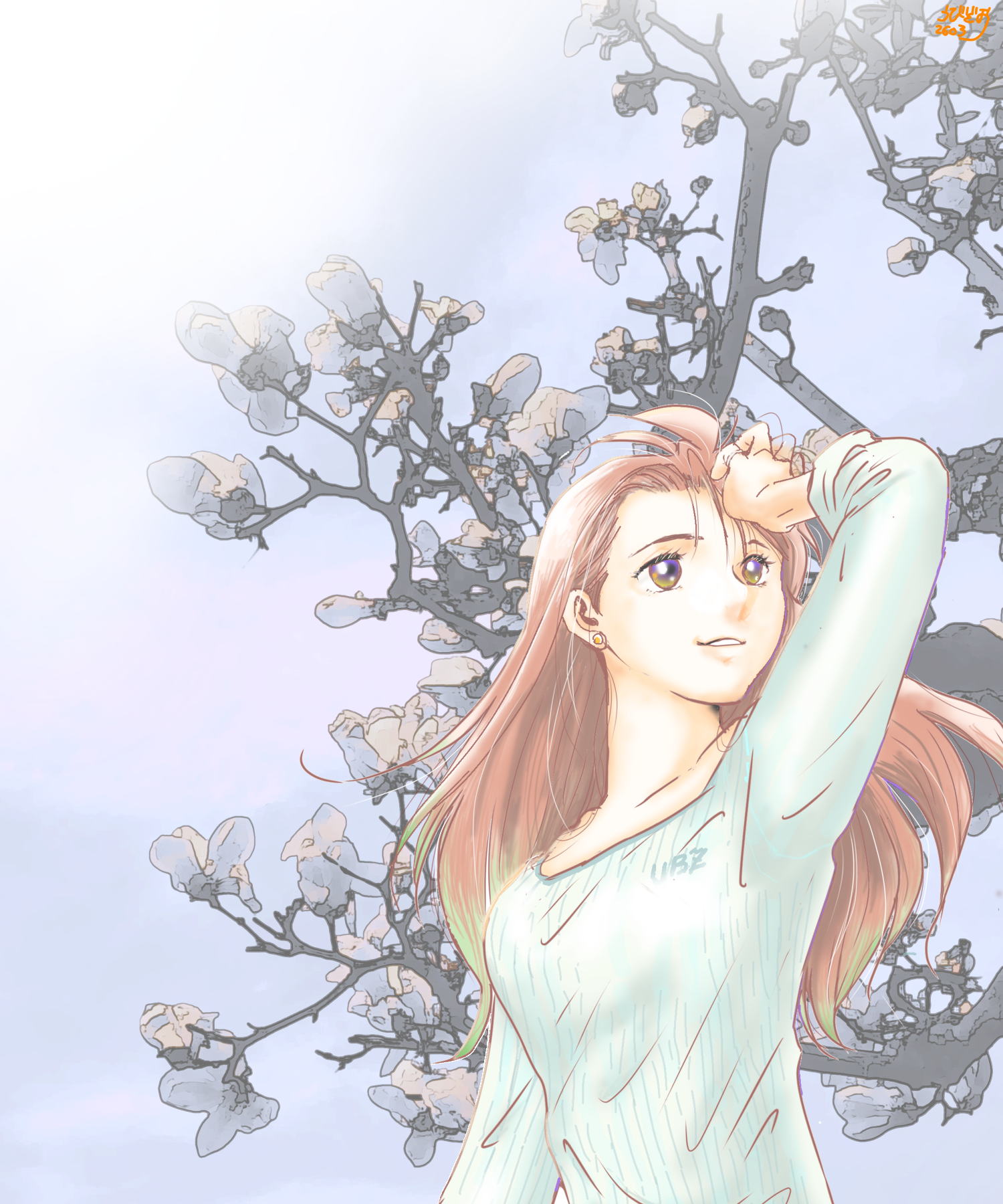 3月の休日に隙間を見付けて描いたものですが、デッサン危ういし、ちょっとまた、古臭いと言われそうな顔になってしまいました……。ま、いいか。