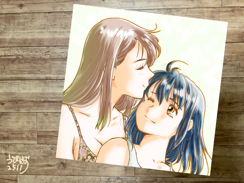 さて、今回の絵ですが、『怖い映画を観たら一緒に夜を過ごそう』のお二人です。実は、下着姿の二人の顔部分です。Xのどこかで公開してます。半裸なんだけど、うびぞおの絵ってあんまりえっちな感じじゃないのは、なぜだろうな?