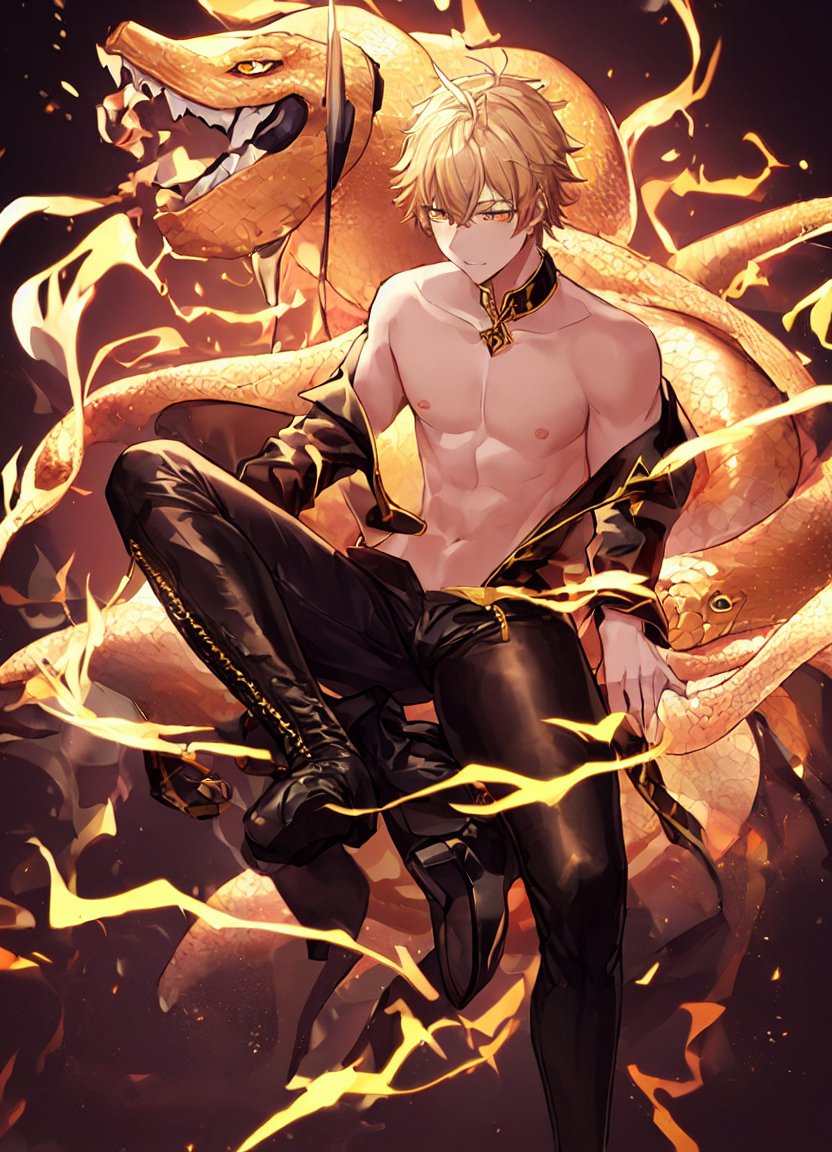 第一弾は、第二部の大ボス戦で活躍した桃太君の相棒、五馬(いつま)乂(がい)君です。黄金の蛇といい、燃える瞳といい雰囲気バッチリですね。ありがとうございます!