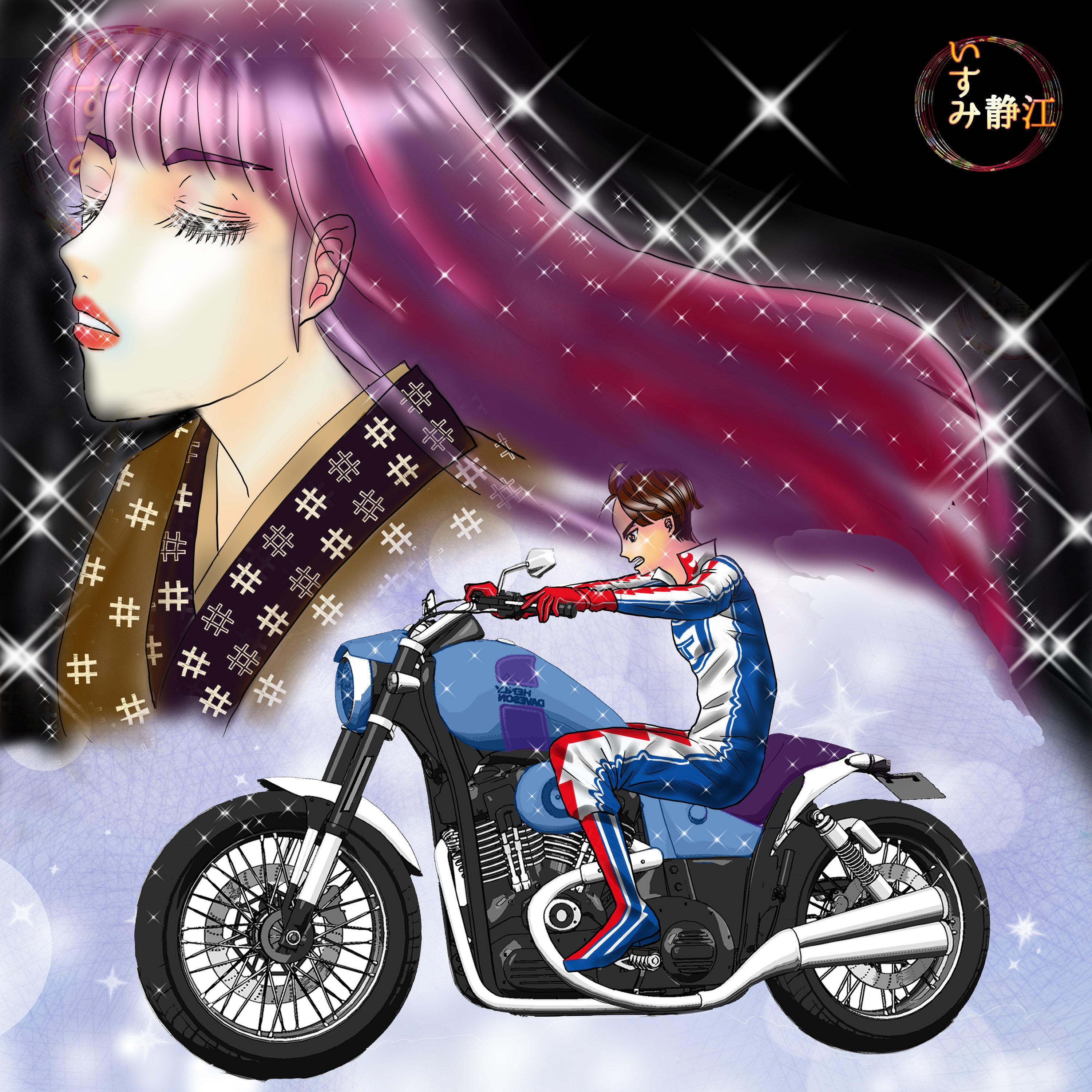 *画は、前の頁のに筆を入れました。ヘアーとかバイクの周りの背景とかですね。