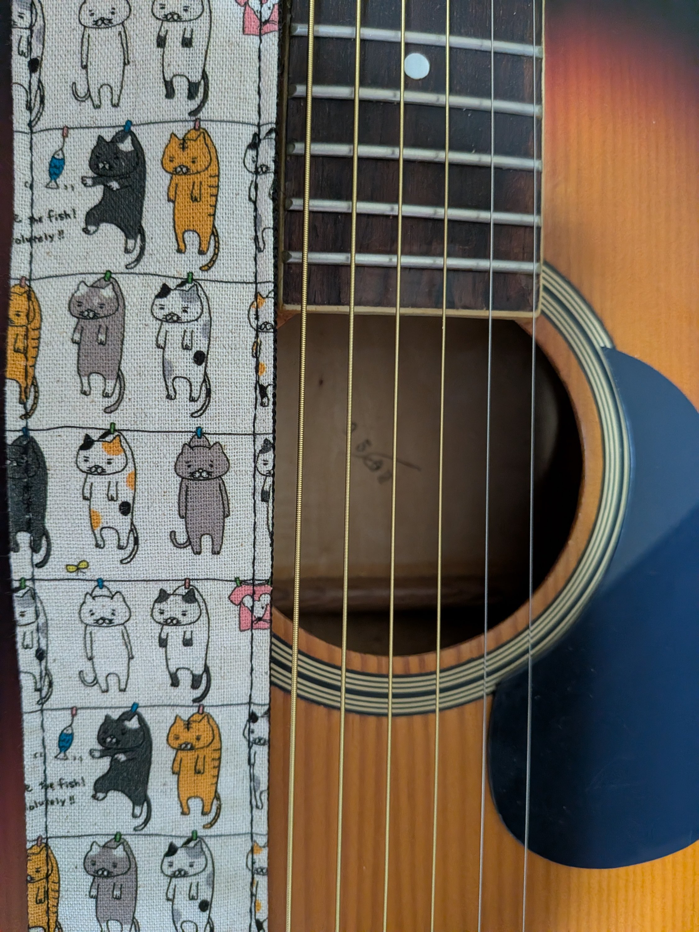 *画は、新しく買った中古のミニギターとストラップです。