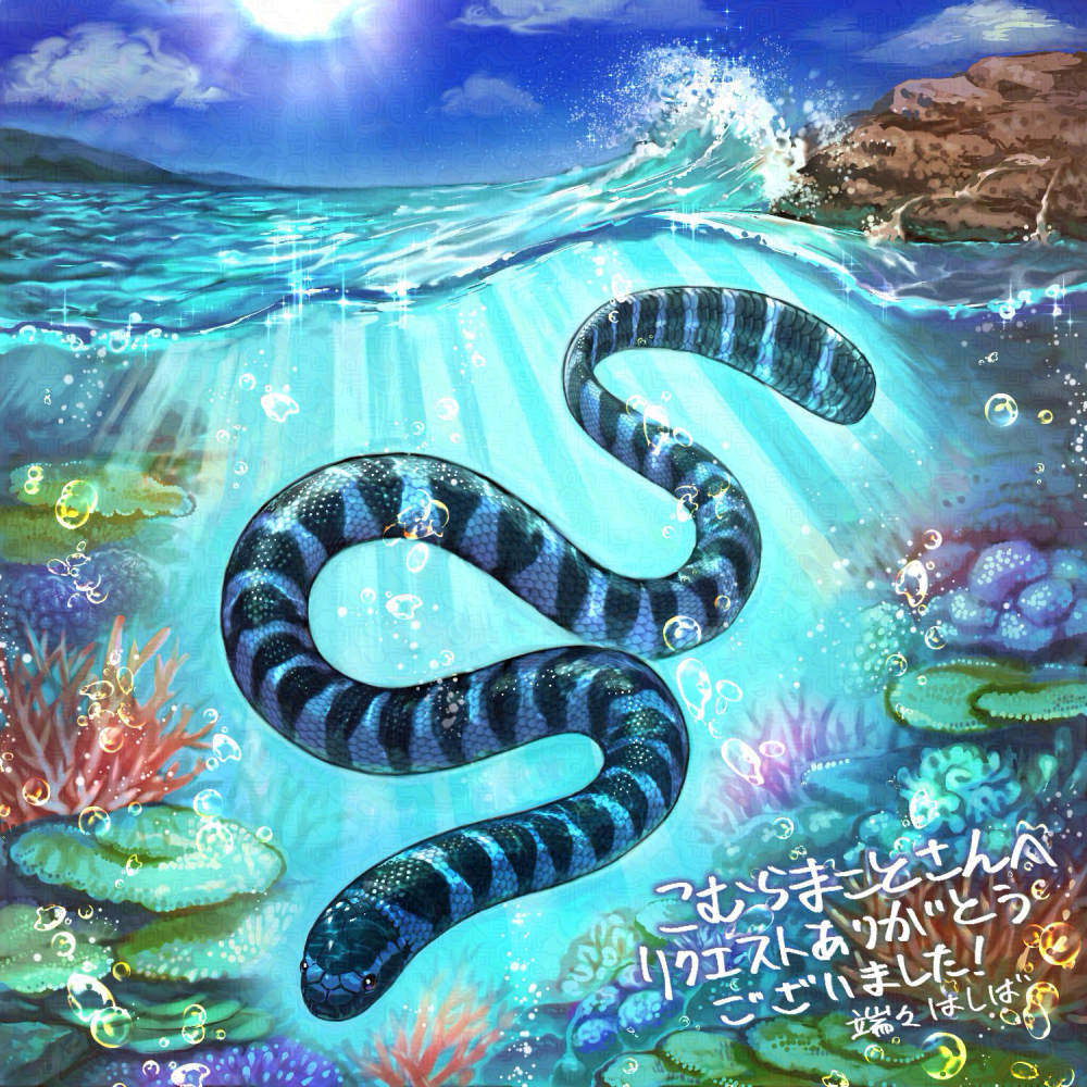 端々様からも、ウミヘビのイラストは初めてで勉強になったとのお言葉をいただいており、そういう意味でも依頼して良かったと感じています。