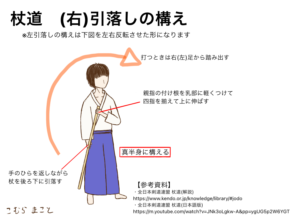 第49話で杖道の「引落しの構え」を出しましたが、文章だけだと分かりにくいと思うので簡単なイラストを描いてみました。