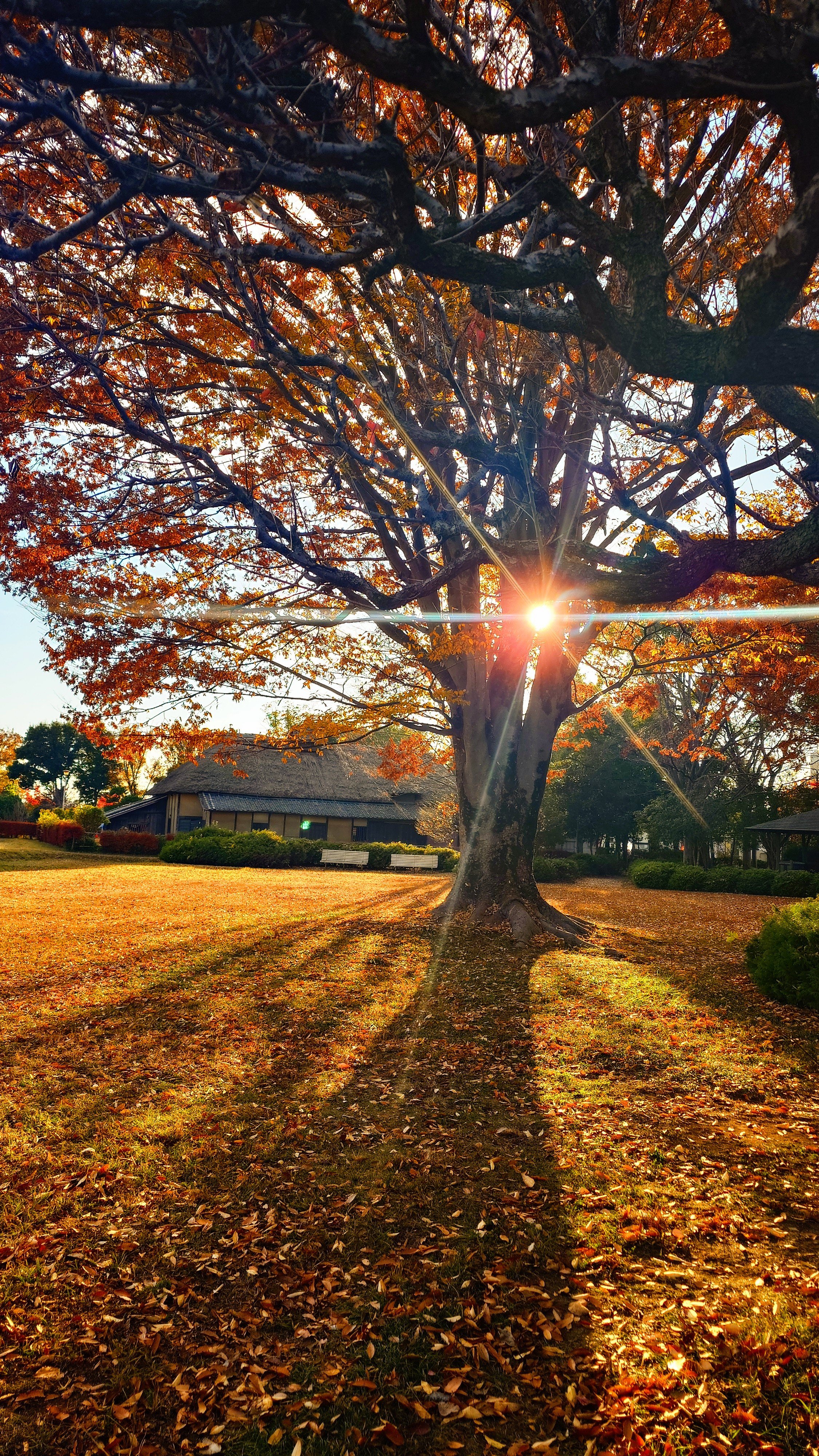 📸 夕陽に照らされた落ち葉