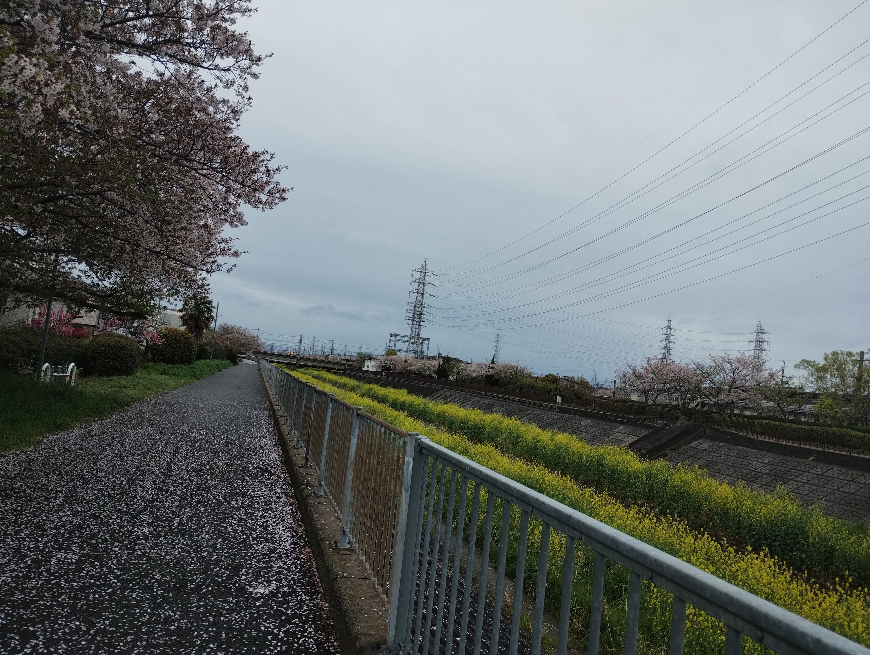 私のイチオシ桜スポット、ギリギリ散る前に行けました。散る桜はせつなくていいですね。