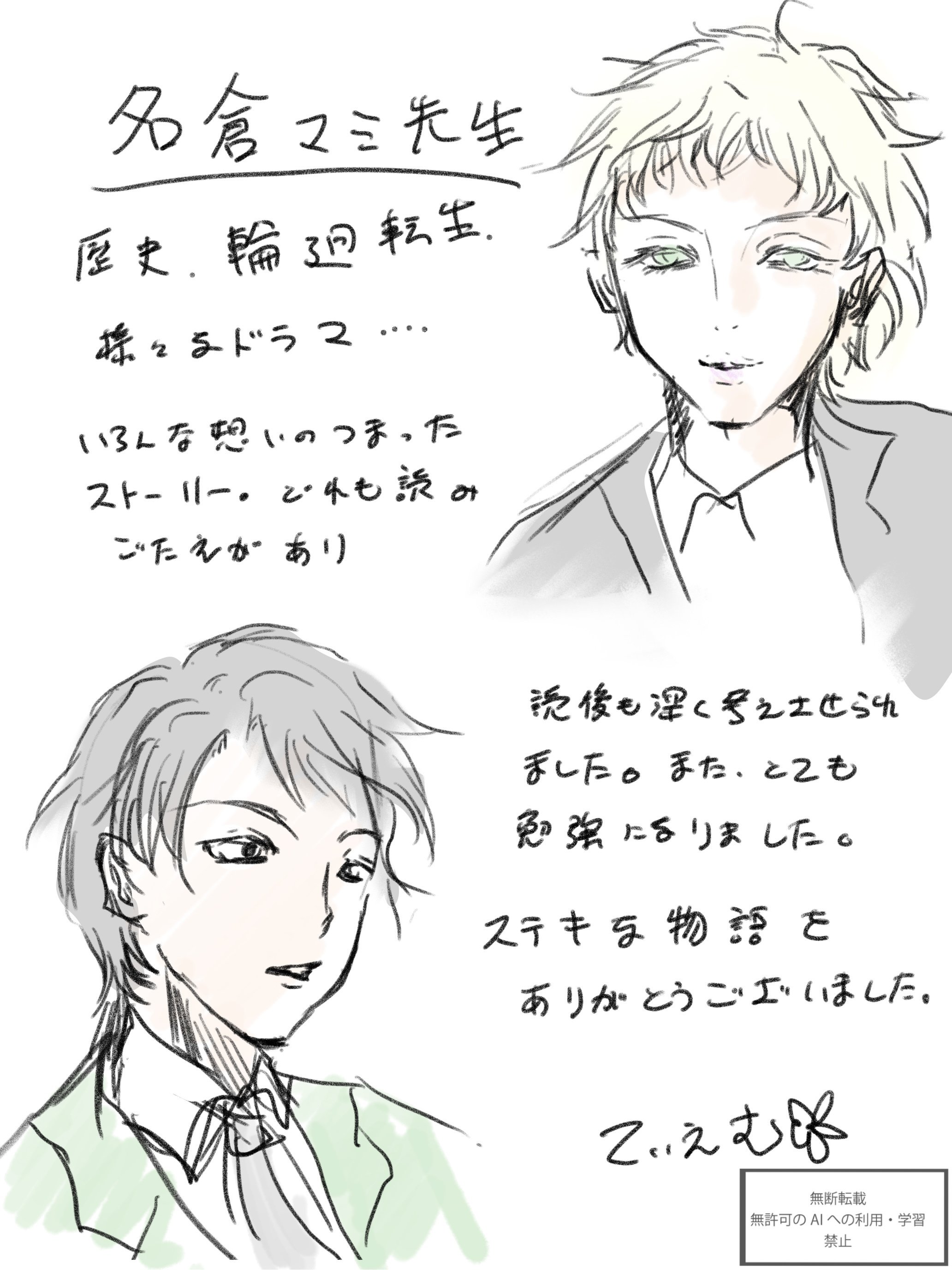 Xの企画でてぃえむ☆さんに初めて出会った時、無料で描いてもらったのもこういう顔の彼でした。