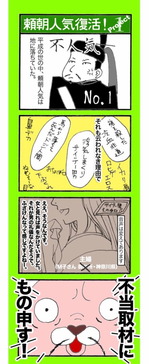 なーんて、頼朝ファンなので、過去色々な文献を読みまくってきましたが、あくまで素人の勝手な推察ですので、どうぞ一蹴下さいませ。さて、本編はもう少し続きます。こんな長たらしいものを読んでくださっている方々には感謝の念しかございません。たまにくじけそうになりつつ、読んで下さっている方の気配を頼りに、完結まで踏ん張る所存です。本当にありがとうございます。また、置き場を提供下さってるカクヨムさんにもお礼申し上げます。カクヨムじゃなかったら、手書き原稿を打ち直ししてなかったかも。添付はこれまた過去に描いた四コマ。頼朝好きってホント仲間がいないんですよね。家康さん、秀吉さん、光秀さんくらい?