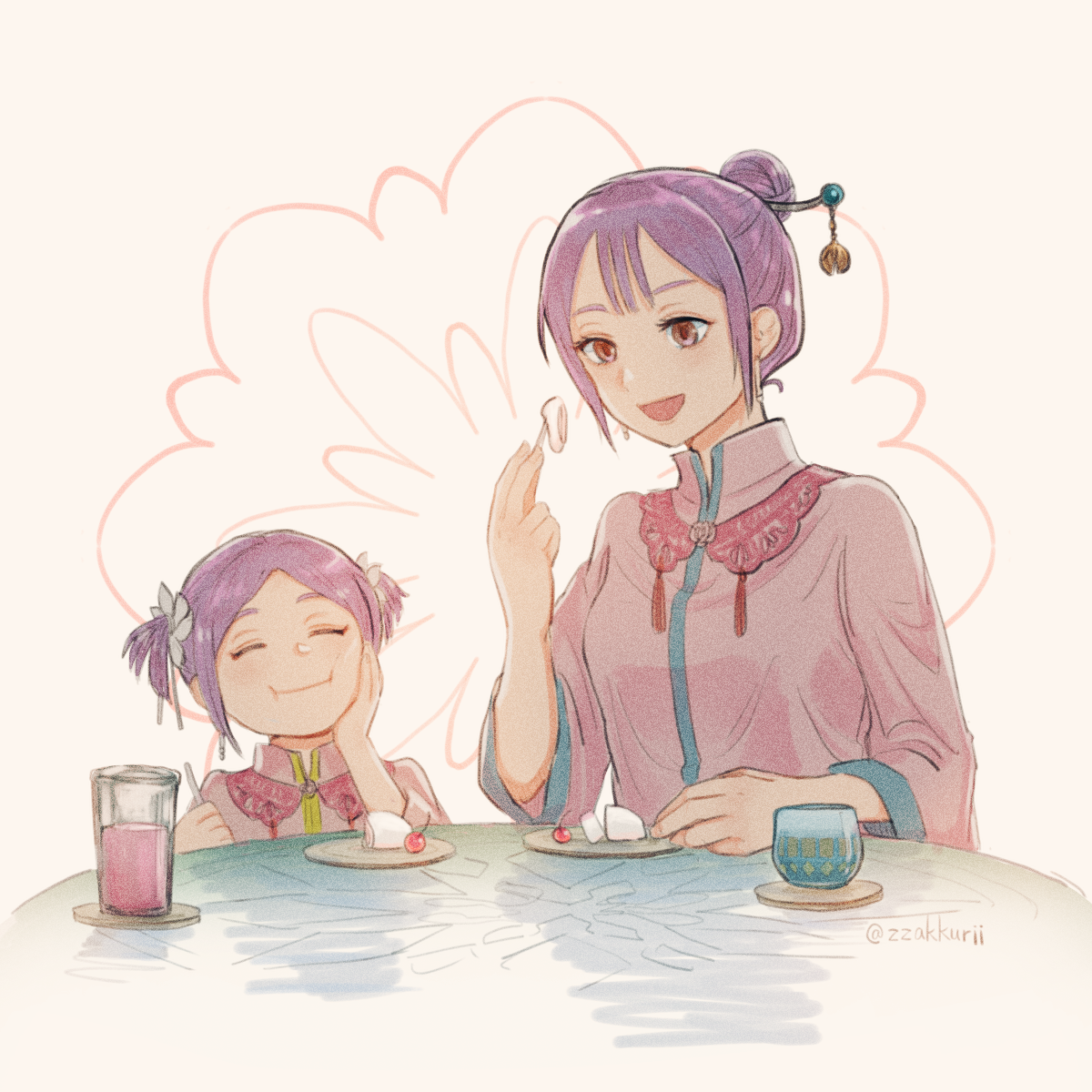 スイーツを堪能するエルミとマーナの、女の子ふたりです。