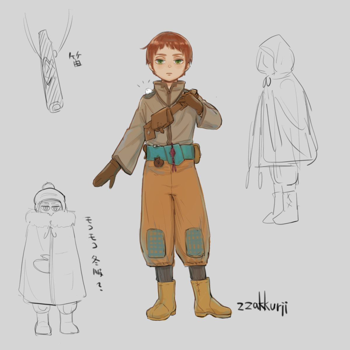 アウルのちょっとあったかめの服ってどんなんだろ?と思いながら案をねりねりしました。