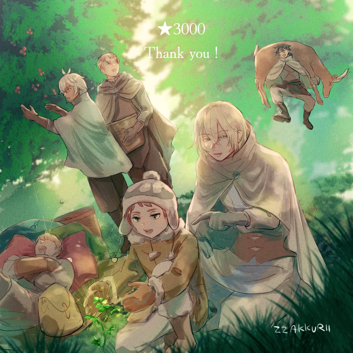 イラストは、『森の中で活動するみんな』です。だいたいいつも、こんなかんじで採集しているものと思われます。