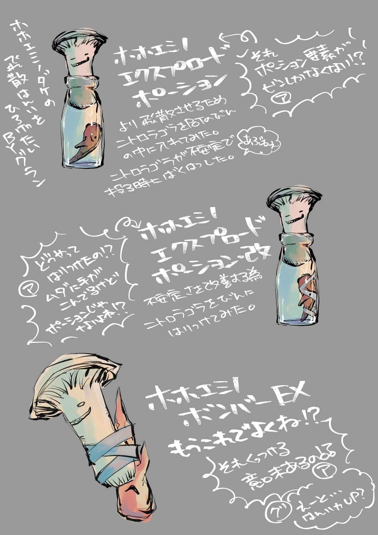 前回の近況ノートのコメントでいただいた、爆弾ポーションにワライダケのような物を混ぜた物。