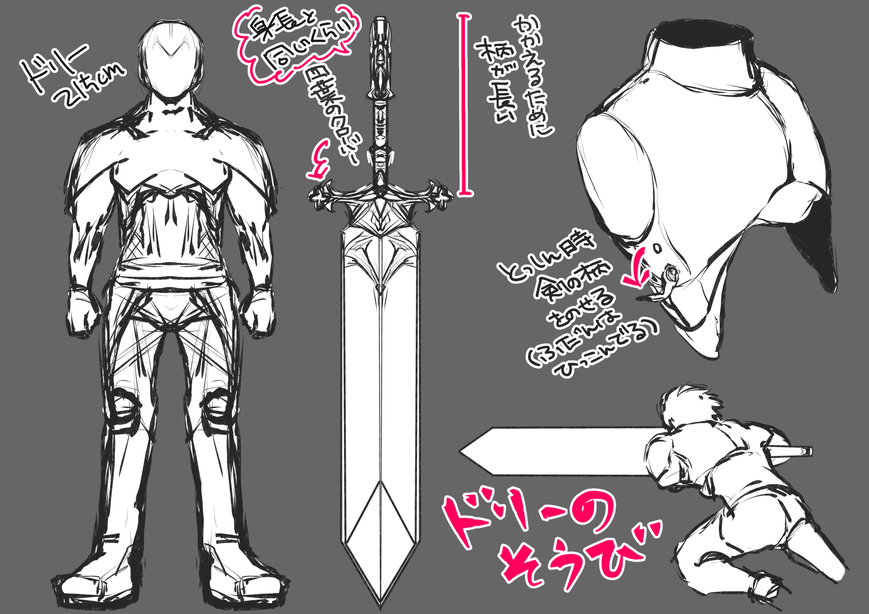 対人ヒーラー論やりたかったとか、ランスチャージネタがやりたかったとか、クレイモア突進ネタがやりたかったとか、ドリーの装備の設定おいておきますね。