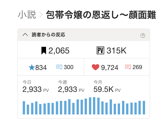 今回30万PVを達成しましたが、同タイトルで掲載している小説家になろう版では、現在90万PVなのでもう少しで100万PVに届きそうです。