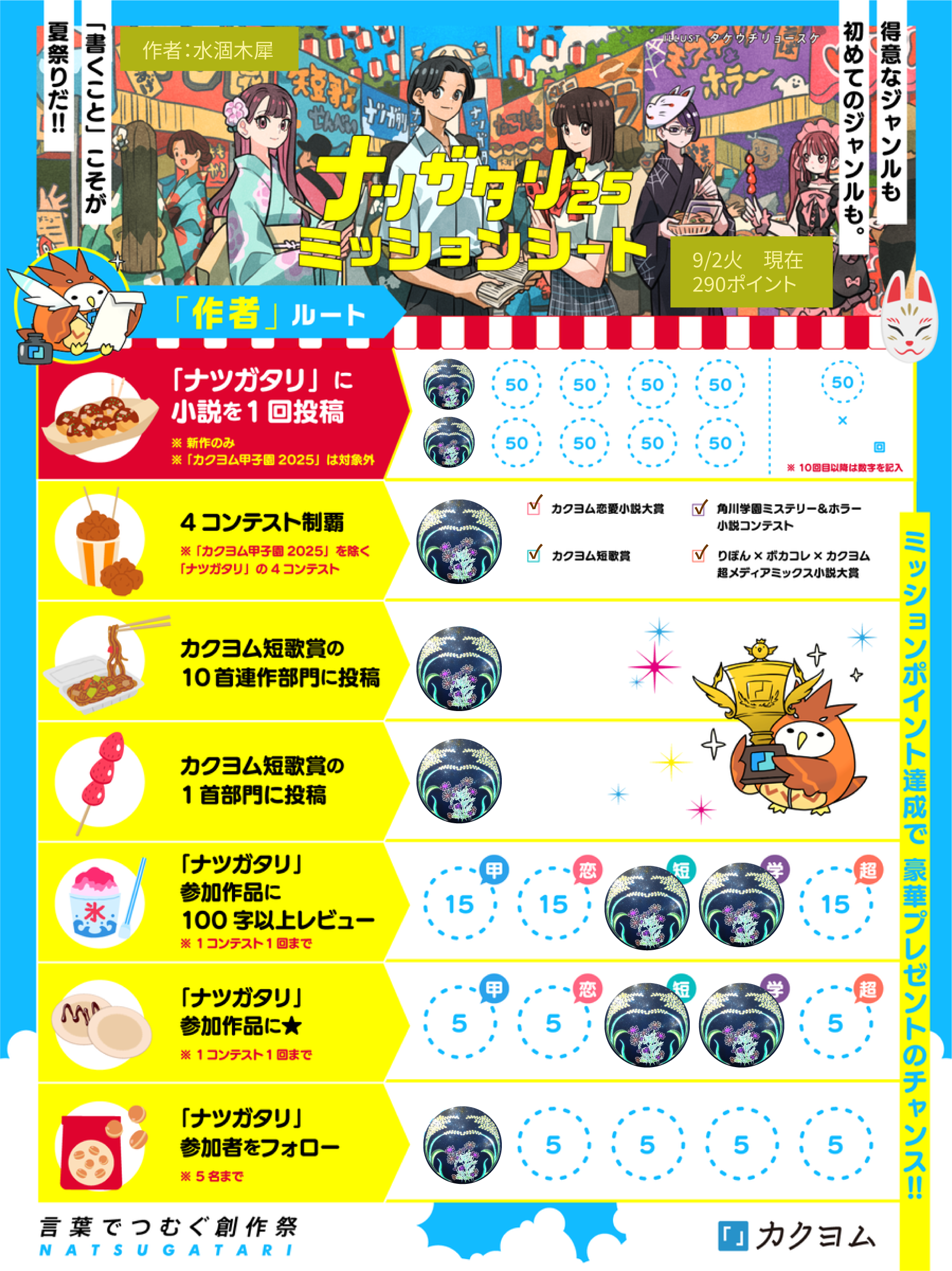 「作者ルート」ですので、ナツガタリに応募した作品を以下に紹介します🎐
