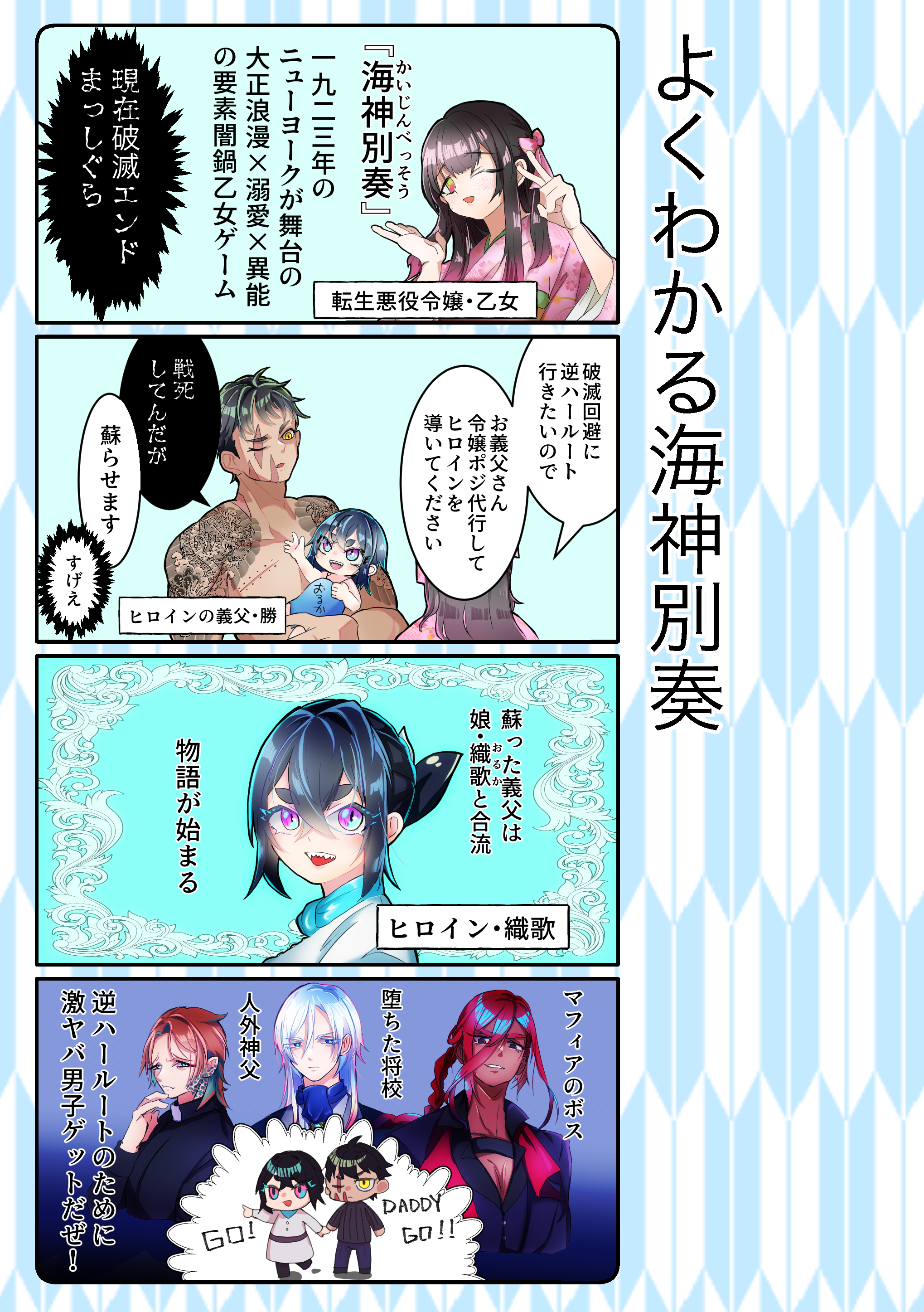 お盆休み中にお絵かきする時間があったので4コマ「よくわかる海神別奏」なるものを描いてみました!