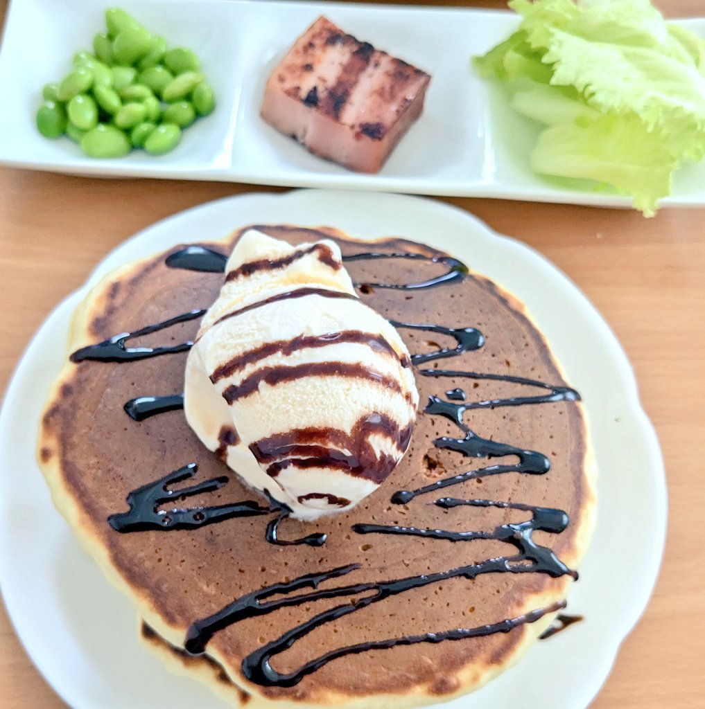 画像はホットケーキにバニラアイスのせたやつです🥞