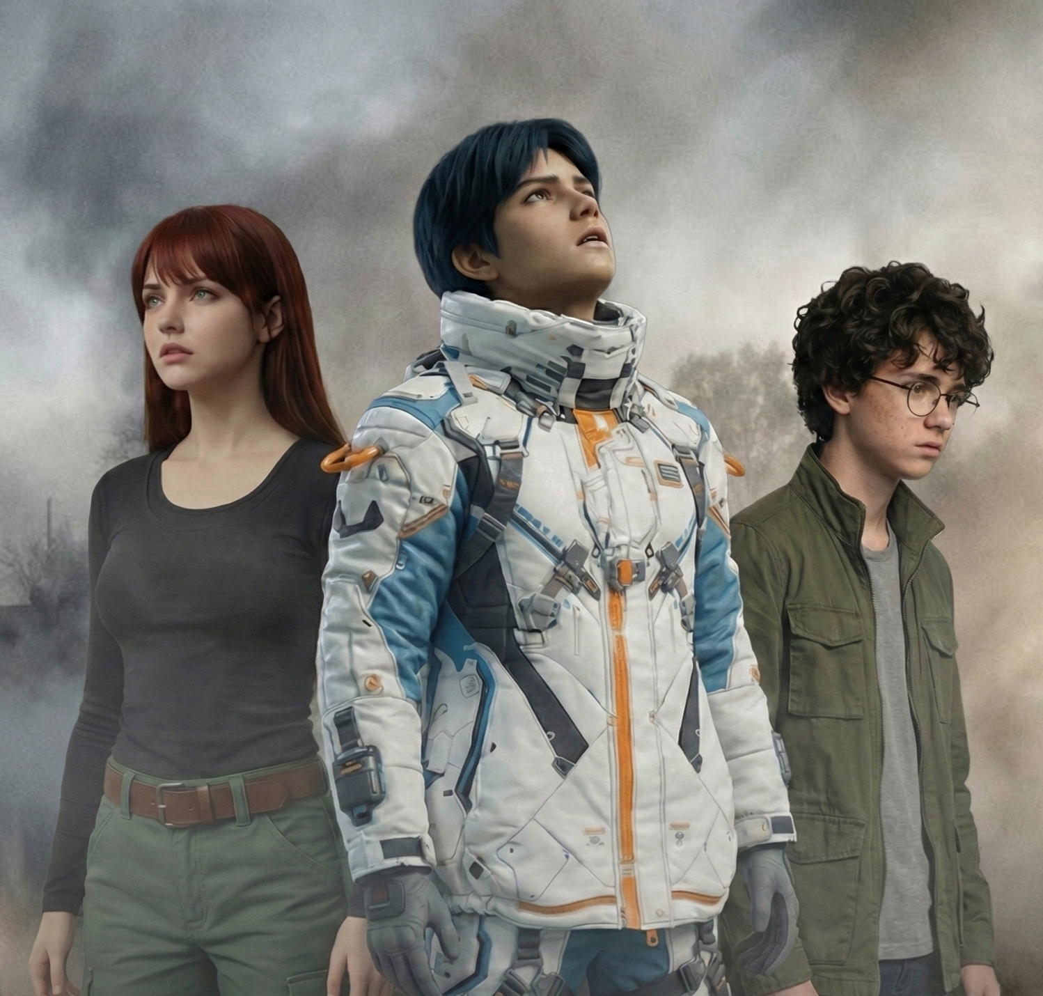 公開したイラストをご覧ください。 同じ場所に立ちながら、三者三様の視線を向ける彼ら。