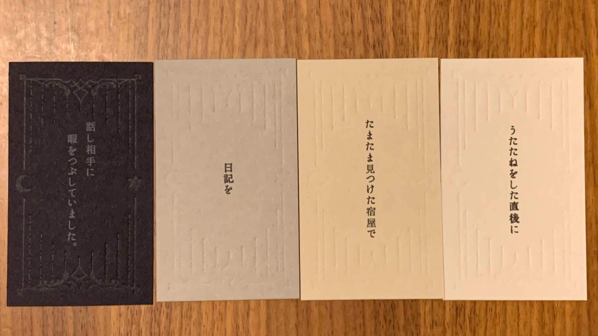 執筆リハビリのつもりで書き始めた「カードが作る小さな物語」ですので、そう長く続けるものでもないのかなと思い、次の6作目でとりあえず完結とします。