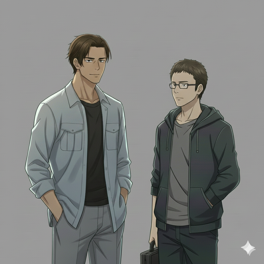 なので、余田さんと富田さんのAI画像(Gemini作成)も貼っておきます。前回貼った笑ってる・ガン飛ばしバージョンとは違い、通常バージョンです。