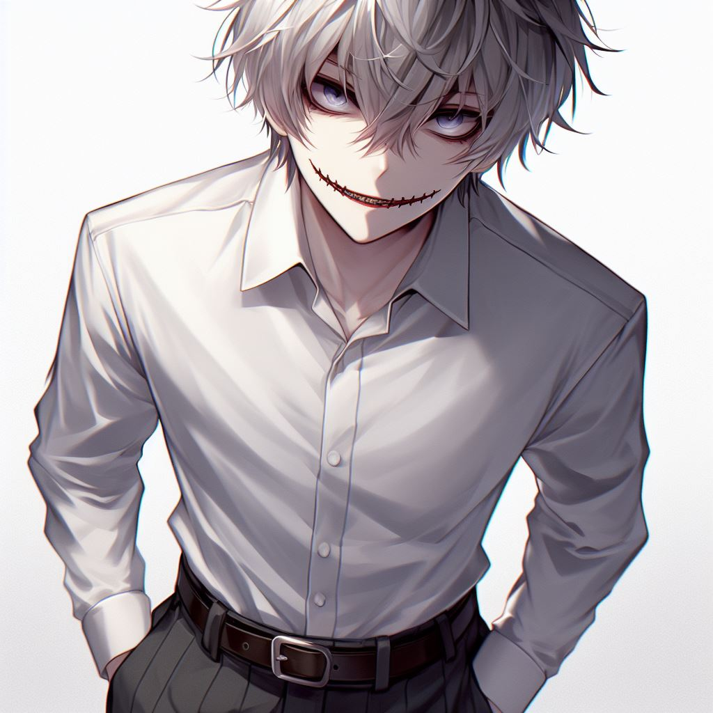 原作通りの白と黒の服装を混じらせ髪形も白髪にして、整った顔立ちにして一見かっこよく見えます。